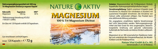 Nature Aktiv Magnesium – Tri-Magnesium Dicitrat – 1 Glas mit 120 Kapseln
