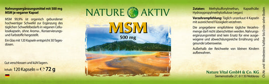 Nature Aktiv MSM – 1 Glas mit 120 Kapseln